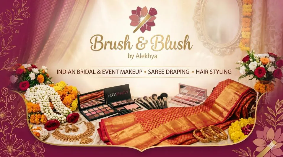 Mastering the art of the Indian glow. Brush & Blush offers premier bridal makeup, expert saree draping, and hair styling for life’s most fabulous moments. We don’t just get you ready; we celebrate your beauty.